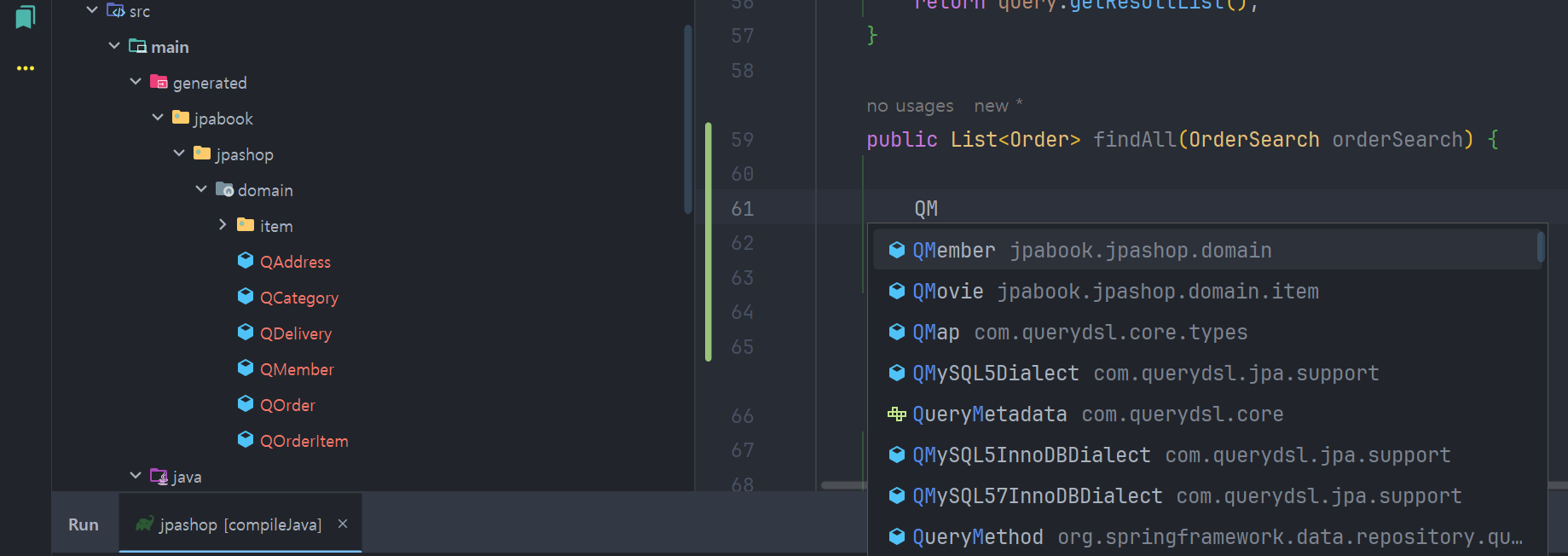 제공해주신 3.x 버전용 build.gradle 파일에서도 그래들 리프레쉬중 오류가 나거나 빌드 오류가 발생하거나 겨우 컴파일 성공하여도 Q 클래스가 main.java.generate 에 위치해있는 게 아니라 어디 저 멀리 build.generated 에 가있어 자바 프로젝트 내에서 import 가 되지 않는 문제들이 있었다.