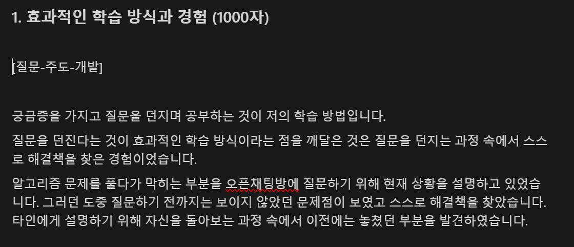 "나만의 학습 방법" 뭔가 낯이 익다 했는데 우테코 자소서에 작성했던 항목이다.