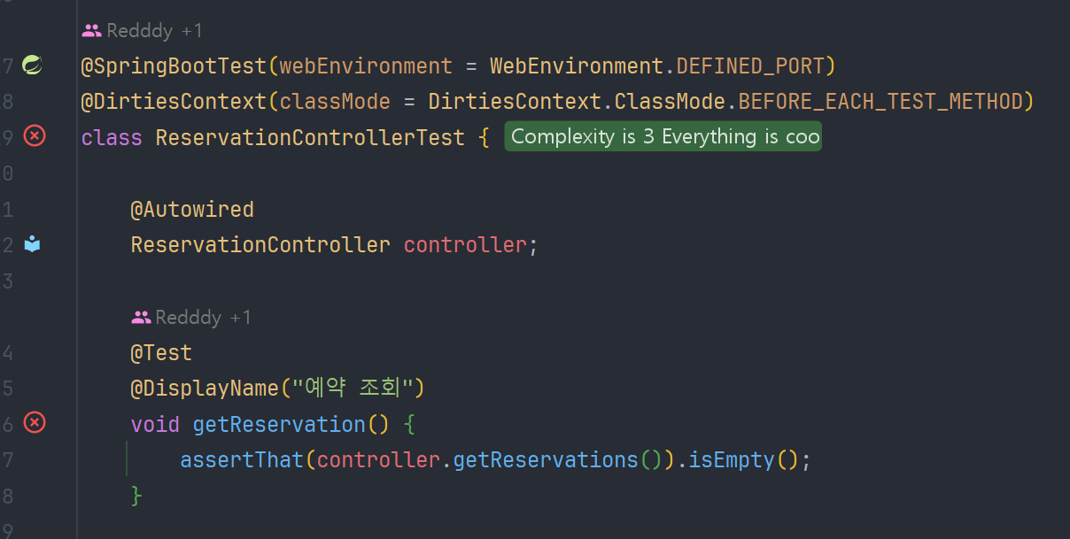 어라 처음보는 RestAssered 가 있다. 어라? 요녀석은 테스트가 실패한다.