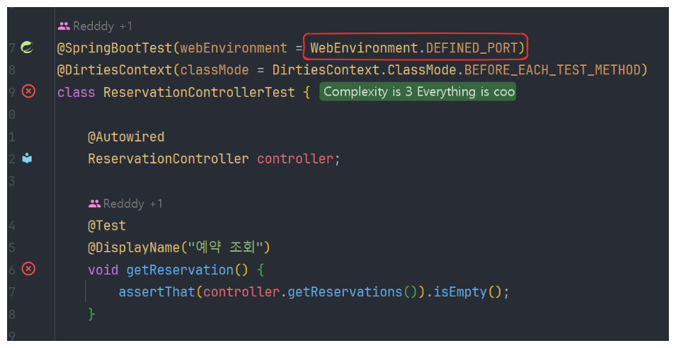 💁♂️: 아하 그럼 @SpringBootTest 애노테이션의 webEnvironment 속성을 사용하여 port를 변경해주면 되겠군요!